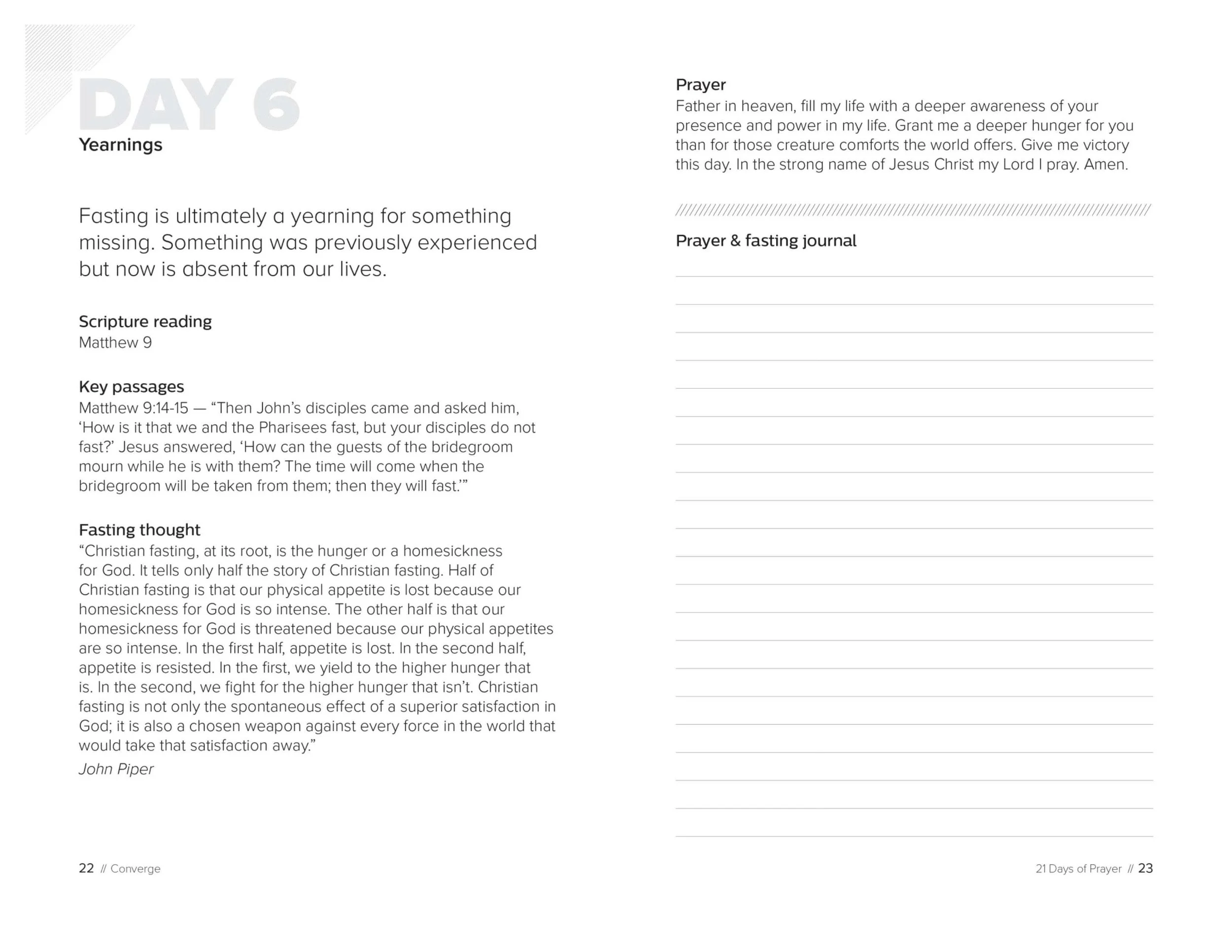 Keep pushing into these few weeks of prayer and fasting. You are doing a good thing, and it has the potential to deeply impact you, your church family, and your community.